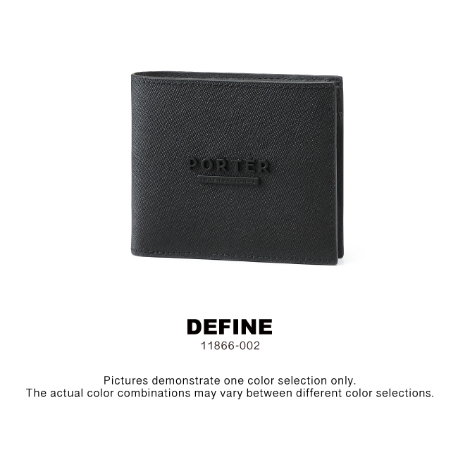 DEFINE Bi-Fold Wallet 11866-00201 Color / BLACK Qty 1 USD$200.00 Shopping cart Buy now Product description Confidence on Your Terms The DEFINE collection features durable pebble-grain cow leather with a textured finish and embossed logo. Available in a range of styles. Product specifications Card Slots Standard Bill Compartments Press Button Coin Pocket Comes with Packaging Box Material: Leather , Lining: Nylon , Others: Woven Fabric & Metal Hardware Size: L11.5 x H9.5 cm Share : Content Recent browsing history CAKE NEW HEAT